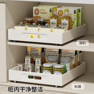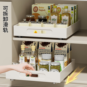 厨房橱柜收纳盒柜内分层神器带滑轨可拆卸置物架调味料瓶罐整理篮