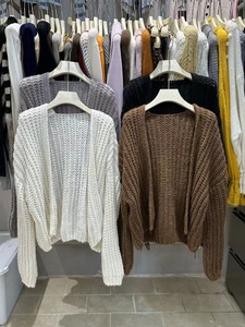 韩系新款时尚设计感粗针慵懒风针织开衫宽松百搭休闲毛衣外套潮