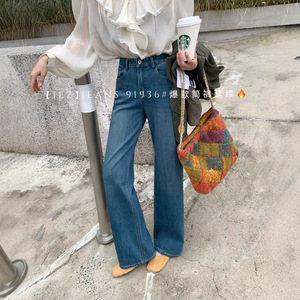 IEZ四面弹窄版直筒牛仔裤女2025秋季韩版高腰显瘦遮跨阔腿拖地裤