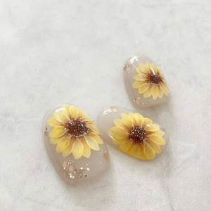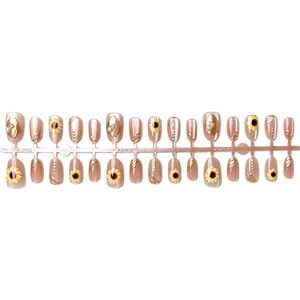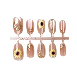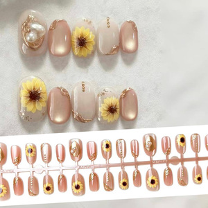 小红书爆款玻璃珠向日葵穿戴甲短杏仁珍珠鎏金猫眼美甲贴片温柔