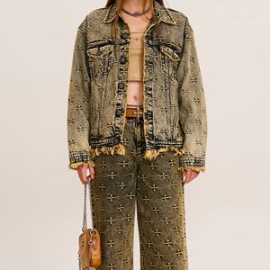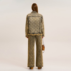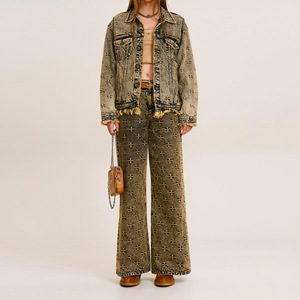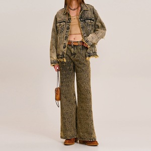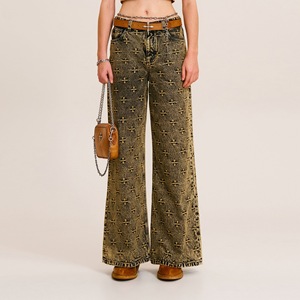 SMFK风暴花园经典阔腿牛仔裤水洗复古提花垂感直筒裤