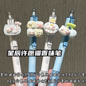 星辰许愿猫香味按动笔可爱挂件笔ins中性笔少女心高颜值刷题黑笔