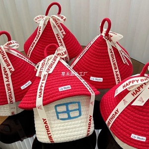 收纳筐可爱桌面编织储物盒大容量生日七夕结婚伴手礼物盒创意摆件