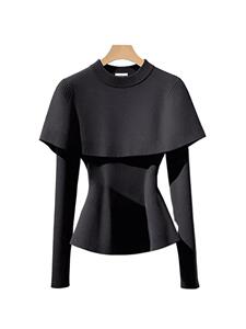 斗篷披肩修身收腰针织衫毛衣美拉蓝色女2025早秋季新款设计感上衣