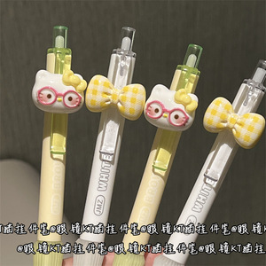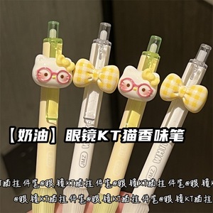 奶油眼镜KT猫香味减负笔高颜值挂件ins少女心按动黑色中性笔学生
