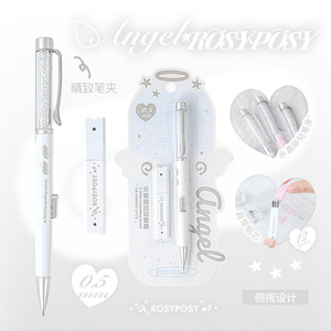 RosyPosy柔设 天使自动铅套装 少女心闪闪水晶0.5HB学生按动铅笔