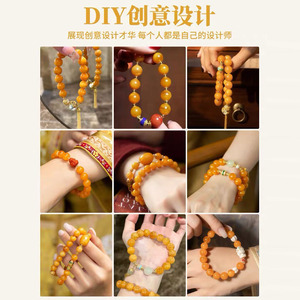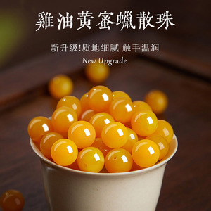 天然鸡油黄蜜蜡散珠手串满蜜配件diy琥珀手链单珠文玩配饰批发