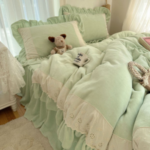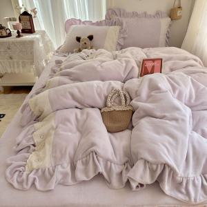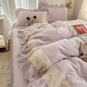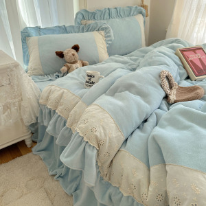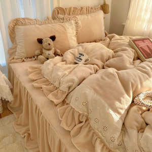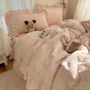 ins法式浪漫蕾丝花边牛奶绒保暖四件套加厚双面珊瑚绒三件套被套1