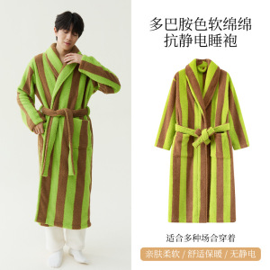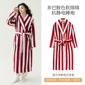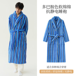 现货秋冬季新款珊瑚绒加厚美丽绒男女睡袍加长浴袍情侣睡衣抗静电