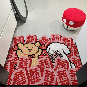 红色喜庆入户门地垫家用玄关进门可裁剪丝圈脚垫耐磨耐脏防滑地垫