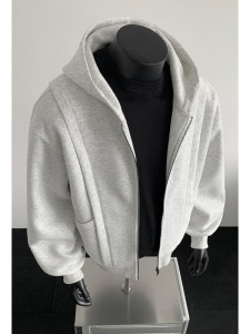 400G重磅解构白花灰连帽卫衣男秋冬季美式高级感上衣潮牌宽松外套