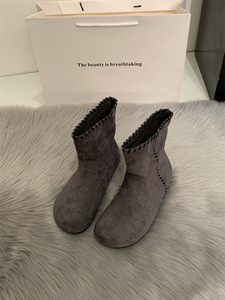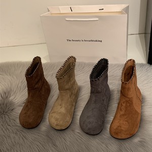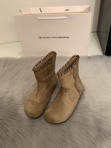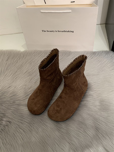 2025秋冬新款复古软底堆堆西部靴绒面勃肯短靴女骑士靴套筒马丁靴