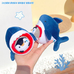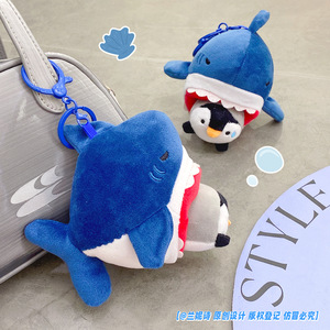 海洋探险系列大鱼吃小鹅毛绒公仔趣味解压抽拉鲨鱼玩偶背包挂件