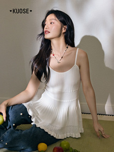 阔色白色背心吊带针织衫开衫两件套装秋季新款女荷叶边上衣夏