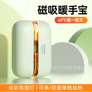 2025新透明暖手宝USB充电挂脖磁吸暖手宝二合一发热暖宝宝七彩灯