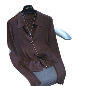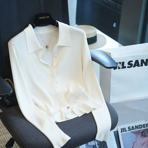 100绵羊毛经典polo领修身显瘦长袖针织开衫女上衣秋季新款603089