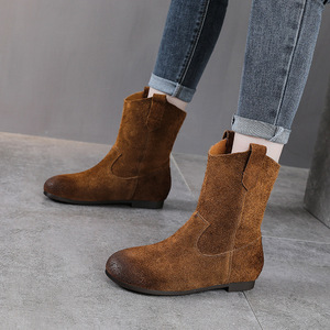 头层牛皮复古中筒单靴子女平底英伦风马丁靴秋冬季新款软底小短靴