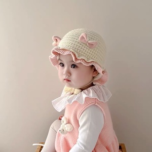 婴儿帽子秋冬季甜美蝴蝶结护耳帽针织公主帽女宝宝保暖防风毛线帽