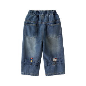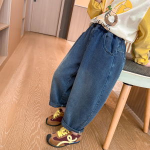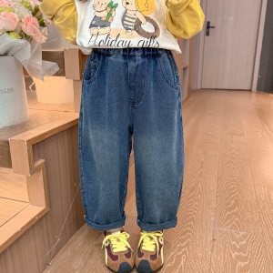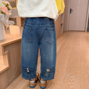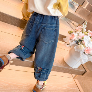 女童刺绣牛仔裤洋气时髦儿童春秋装女宝宝直筒休闲裤子小女孩长裤