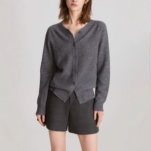 ELLE简约气质针织开衫女2025秋季新款圆领显瘦单排扣修身毛衫外穿