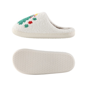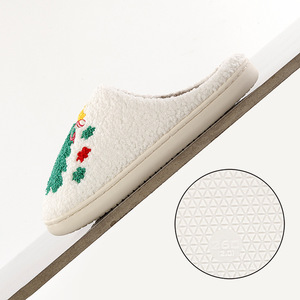 新款舒适居家蝴蝶结圣诞树保暖冬季棉拖鞋情侣男女厚底鞋加厚防滑