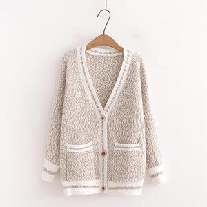 跨境外贸秋冬新款雪尼尔毛衣女宽松外穿针织开衫洋气时髦上衣外套