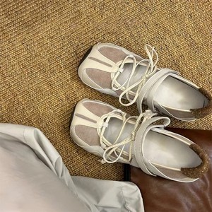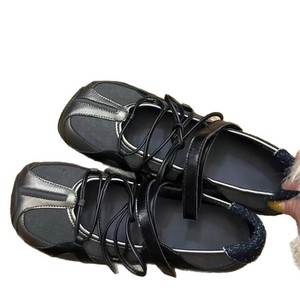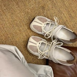 牛皮版~机能风运动方头芭蕾鞋女百搭交叉带魔术贴浅口玛丽珍单鞋