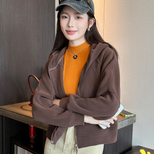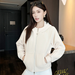 800g加厚修身奥粒摇粒绒卫衣女2025秋冬季连帽开衫上衣保暖外套