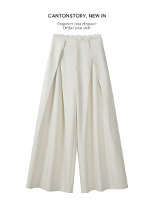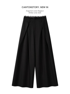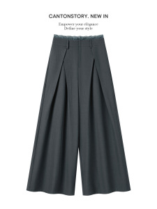 羊城故事 高级灰蕾丝垂感休闲裤女2025新款夏季拖地阔腿直筒裤