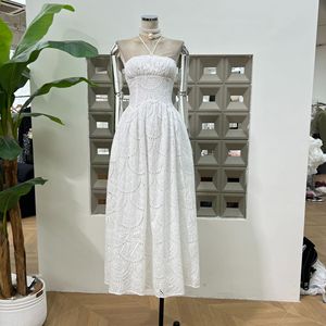 优雅旅游氛围韩系修身露背长裙2025新款刺绣棉质抹胸白月光连衣裙
