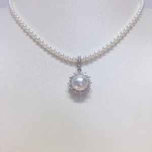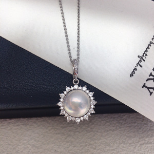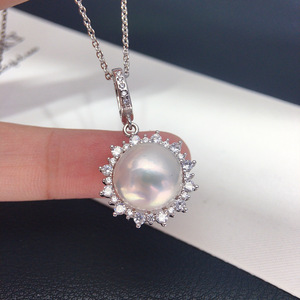 精工款微镶太阳花淡水珍珠圆形巴洛克珍珠吊坠万能扣珍珠项链批发
