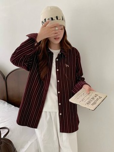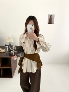 日系复古文艺灯芯绒条纹衬衫2025秋季显瘦叠穿打底衫通勤长袖ZWT