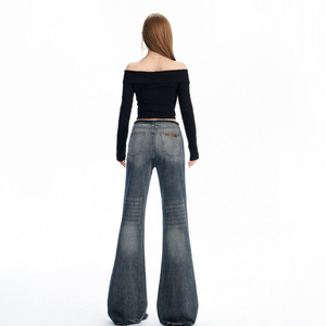 稚橘#美式复古辣妹毛边微喇牛仔裤女低腰显瘦气质潮流百搭喇叭裤