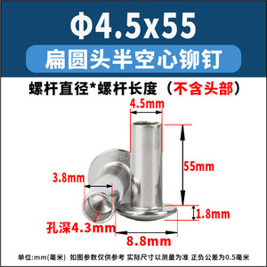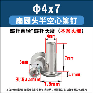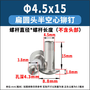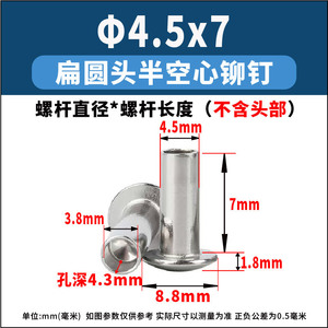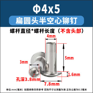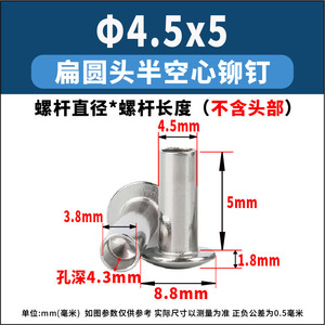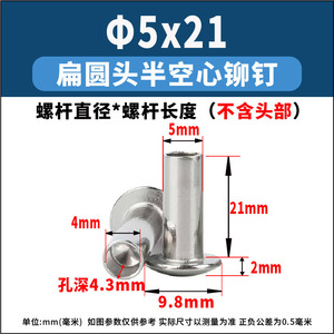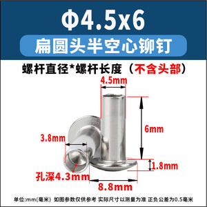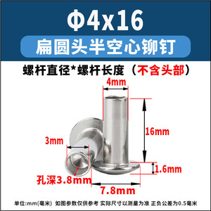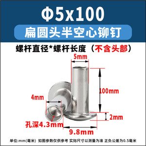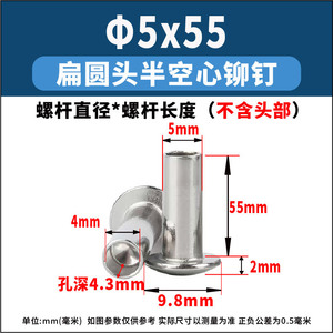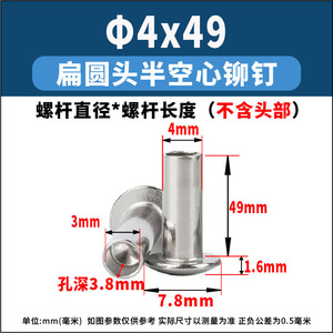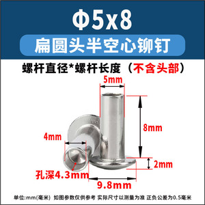 工厂直销304不锈钢大圆头半空心铆钉批发M4-M5大扁头中空敲击铆钉