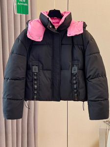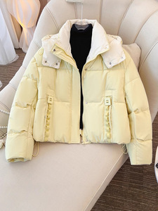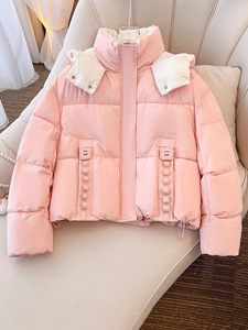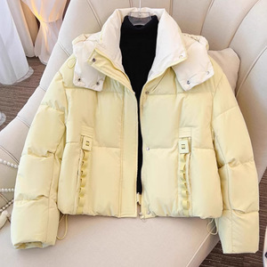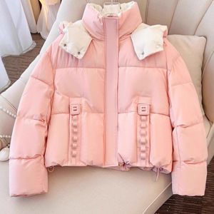 今年棉袄撞色短款小个子连帽羽绒棉服宽松冬季2025新款加厚外套女