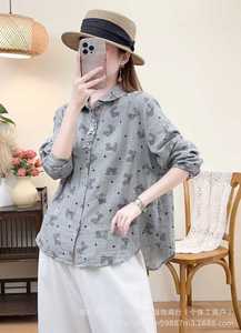 秋季新款女装棉长袖轻奢减龄翻领衬衫显瘦上衣打底衬衣外套