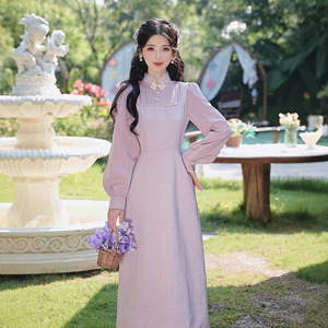 新中式国风绝美紫色改良旗袍连衣裙收腰气质仙女日常中长裙秋冬