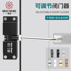 不锈钢简易闭门器家用方型可调节自动关门器双开门弹簧滑轮闭门器