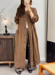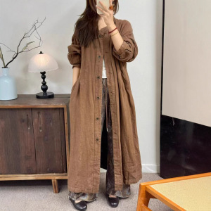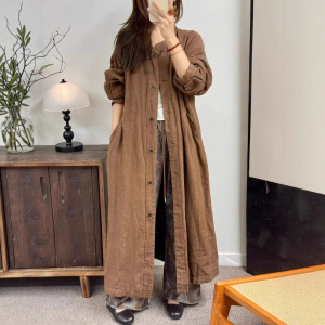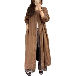 新款休闲通款复古高端亚麻长袖风衣文艺休闲气质女装