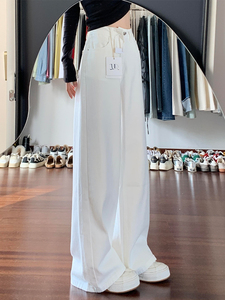 白色阔腿牛仔裤女夏季新款高腰宽松显瘦百搭垂感大码直筒拖地裤子