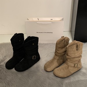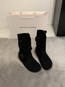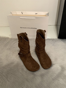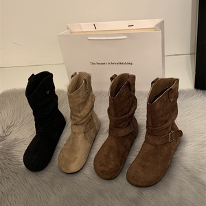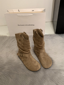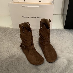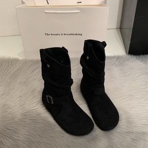 内增高复古短靴女2025新款短筒勃肯褶皱堆堆靴皮带扣英伦风马丁靴