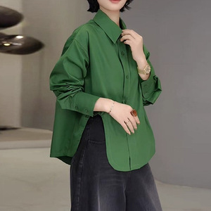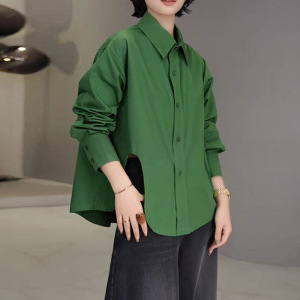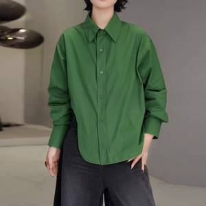 法式不规则衬衫女韩系大码时尚设计感长袖胖mm宽松显瘦休闲上衣