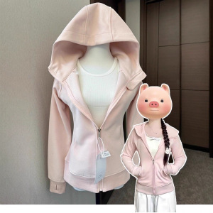 跨境纯棉复合韩系百搭运动外套纯欲修身连帽开衫拉链卫衣外套定制