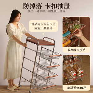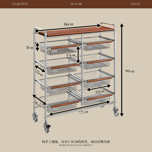 中古风零食置物架多功能夹缝小推车多层果蔬厨房菜篮可移动收纳架