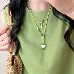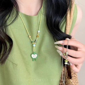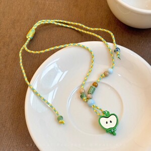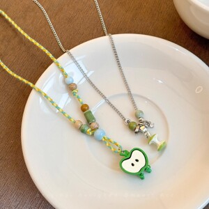 可爱半切青苹果吊坠串珠项链女甜酷编织绳抽拉可调节长款配饰小众