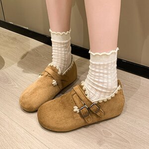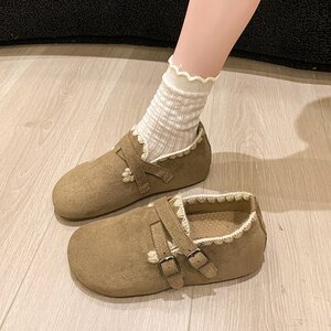 百搭平底内增高全包勃肯鞋2025新款秋配裙子单鞋外穿花边休闲女鞋