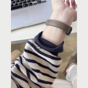 美式oversize条纹圆领卫衣女春秋新款爆款宽松休闲针织毛衣上衣冬