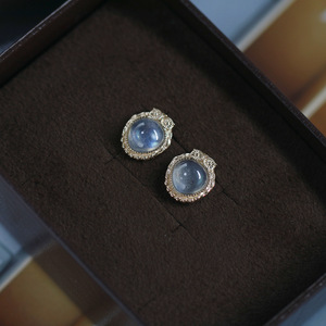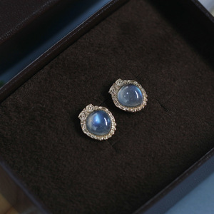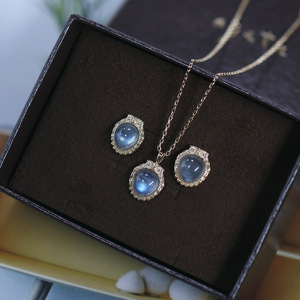 凰谨珠宝 日系阿卡朵复古天然拉长石耳钉项链女 925银镀金猫头鹰