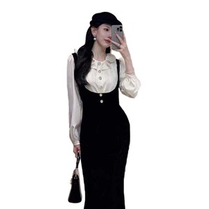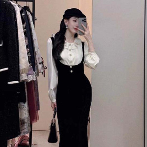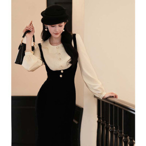 2025秋季法式赫本风轻奢优雅气质时尚收腰假两件衬衫连衣裙女新款