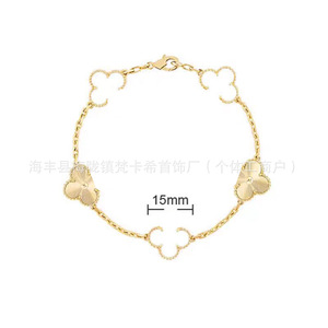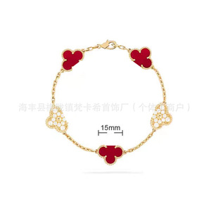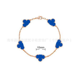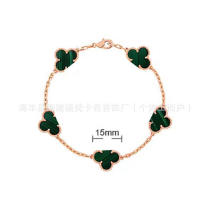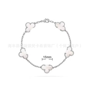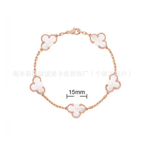 CNC梵家V金高版白贝母镀玫瑰金四叶草手链女紫玉髓手饰批发直销